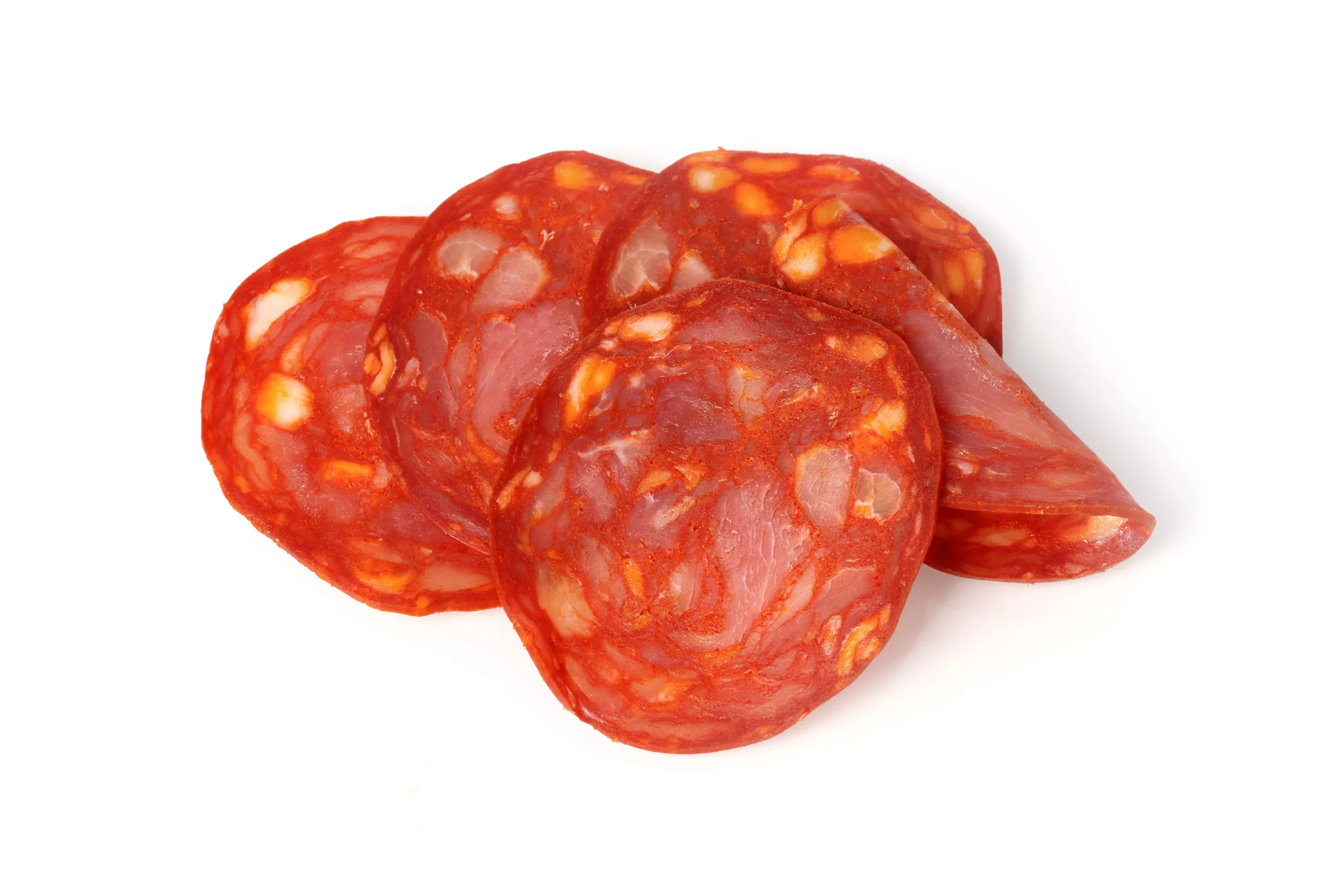 Pork (122g per110g of finished product), lactose (MILK), salt, dextrin paprika, caseinate (MILK), dextrose, garlic, emulsifier (diphosphate), spices, antioxidant (sodium ascorbate), and preservatives (sodium nitrite, potassium nitrate). Casing not edible.