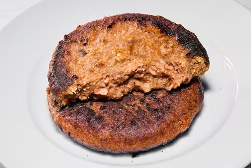 Water, vegetable (oyster mushroom, mushroom, onion), vegetable oil (coconut), vegetable protein (soy, soy protein, pea protein), gluten (wheat), natural flavouring, dietary fibre (oat), starch (wheat), thickener (methylcellulose), preservative (lactic acid), barley malt extract, vinegar, beetroot powder, salt, vitamins B12.