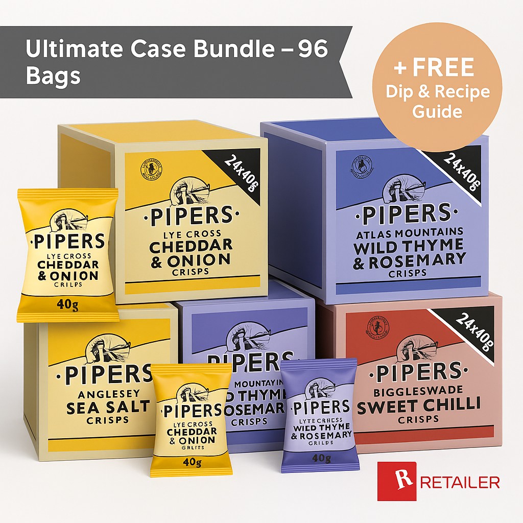 Discover the joy of truly irresistible snacking with the Pipers Crisps Ultimate Case Bundle – the perfect choice for anyone who loves bold flavours, crunchy textures, and the unmistakable quality of hand-cooked British crisps.