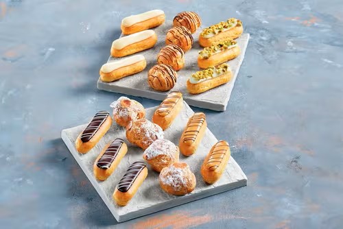 Experience the finest in French pâtisserie with Symphonie Pasquier Petits Fours Pâté à Choux, a frozen collection featuring 44 assorted petits fours. Delight in 8 mini pistachio éclairs, 6 caramel choux topped with chocolate, 8 mini vanilla éclairs, 8 mini coffee éclairs garnished with chocolate, 6 praline choux, and 8 mini chocolate éclairs. This sophisticated selection is perfect for adding a touch of elegance to any occasion. Whether hosting a soirée or enjoying a cosy tea time, these delectable treats promise to satisfy your sweet cravings with their exquisite flavours.