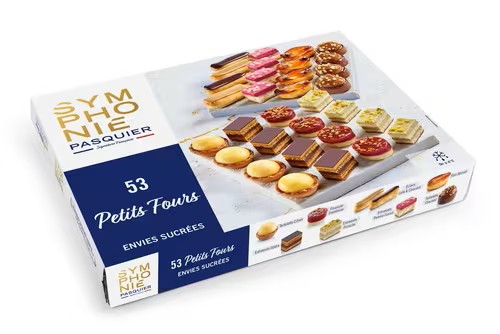 Discover a world of delicate confections with Symphonie Petits Fours Envies Sucrées. This gourmet frozen selection offers a perfect balance of sweet and tart. Begin with 6 vibrant Lemon Tartlets and explore the blend of 7 Coffee and Chocolate Cream Desserts. Relish in 6 finely decorated Financiers with Raspberry Jelly and Pistachio touches, accompanied by 7 smooth Pistachio Cream Desserts. Indulge in the classics with 4 Coffee Éclairs and 4 decadent Chocolate Éclairs. Round off your experience with 7 exquisite Caramelised Apple Cream Desserts topped with layers of Vanilla Mousse and Blackcurrant Mousse. An impeccable choice for gatherings, celebrations, or simply treating yourself to a moment of joy.